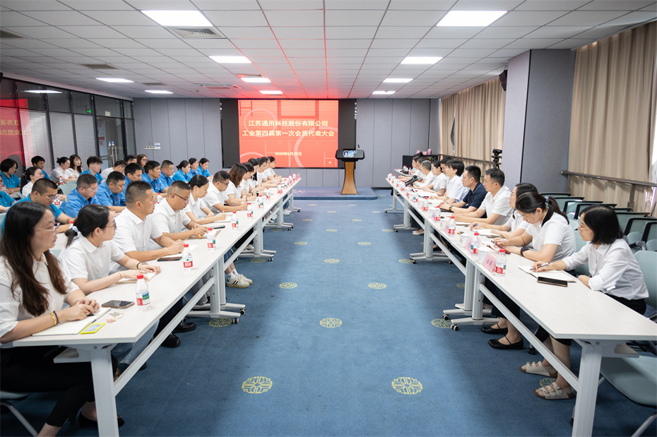 8月29日,江蘇通用科技股份有限公司工會第四屆第一次會員代表大會順利舉行。公司黨委書記、董事長賈國榮,黨委副書記陶曉芹,副總經理卞亞
