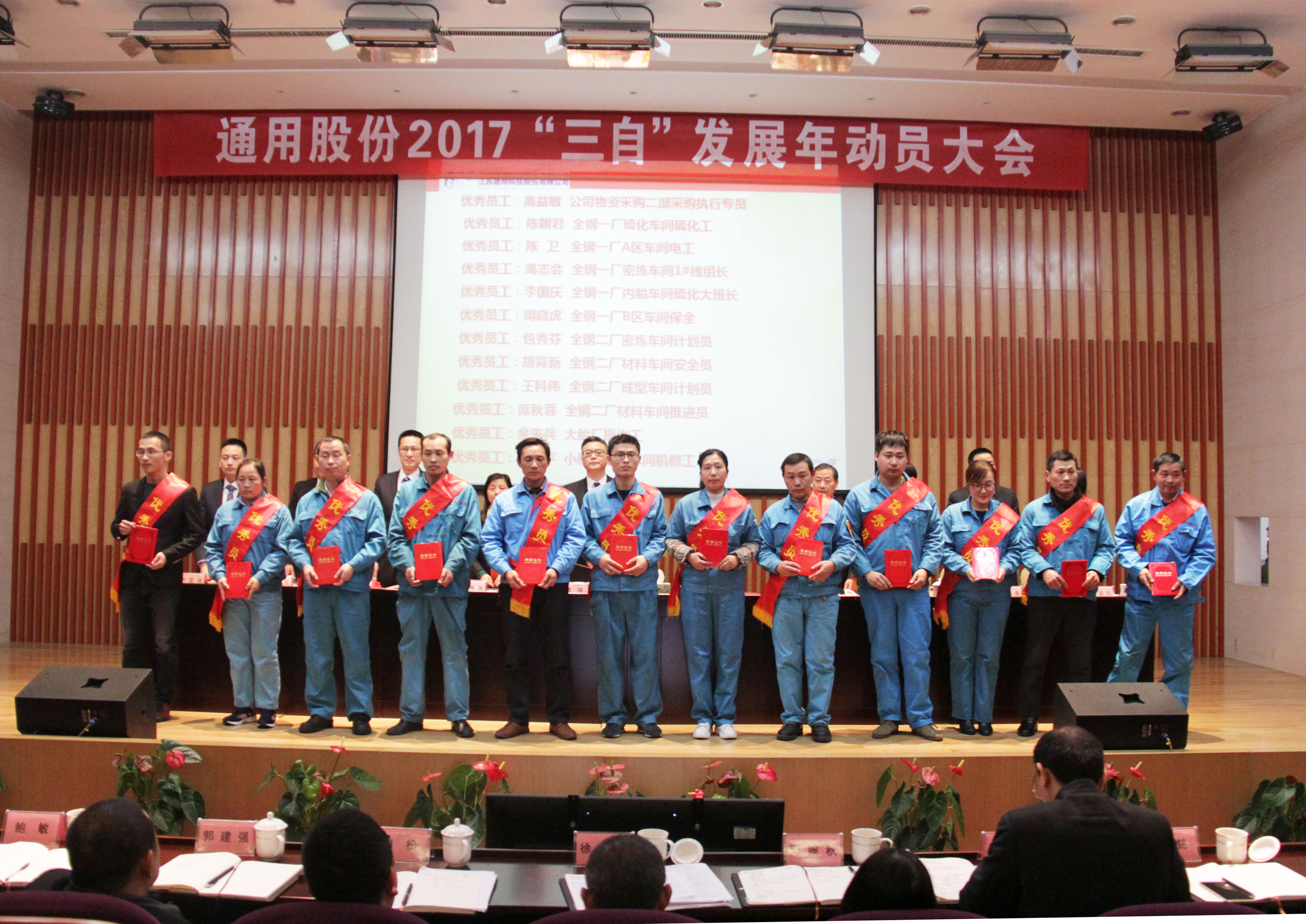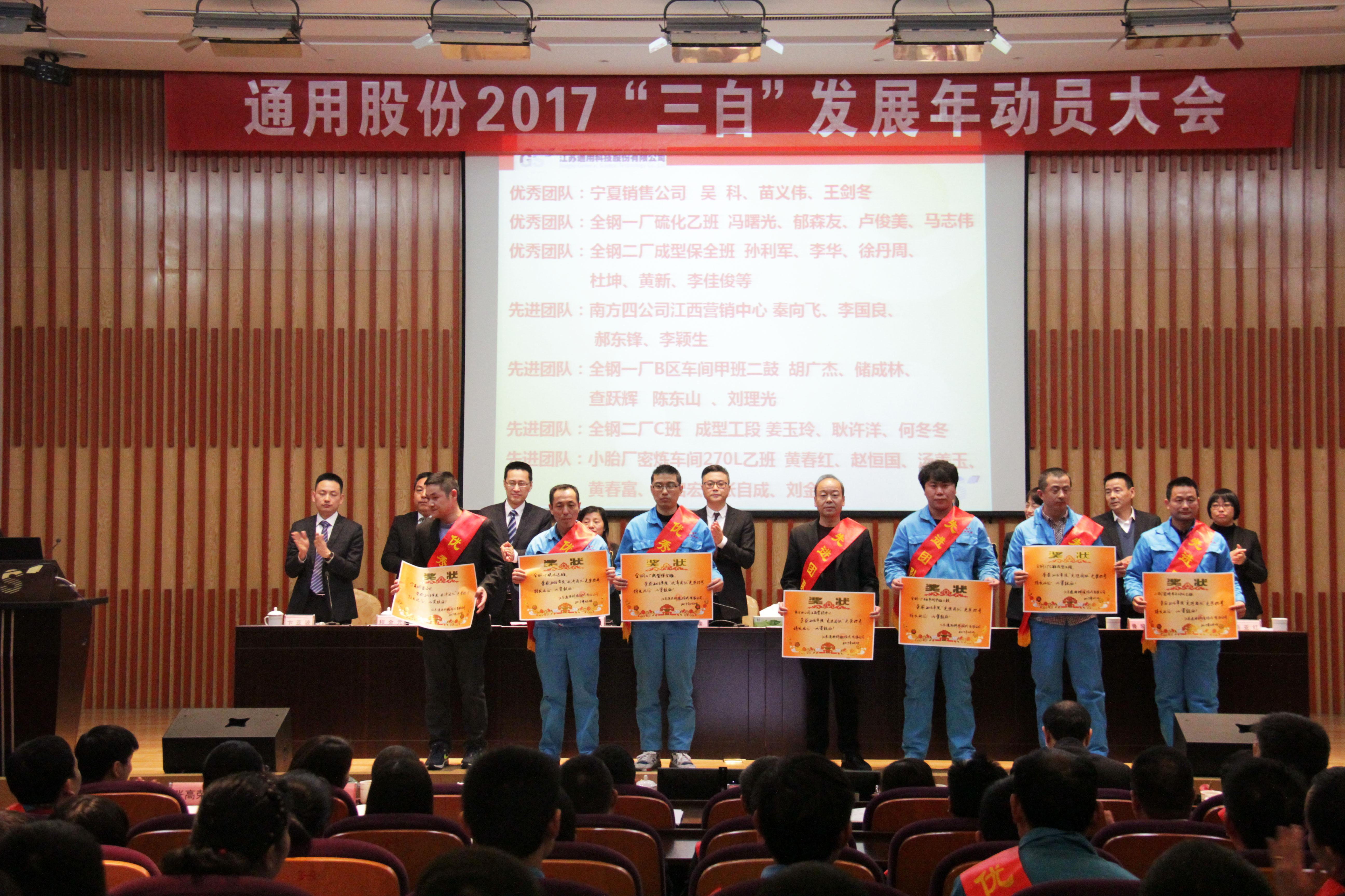 過去的2016伴隨著國(guó)民經(jīng)濟(jì)進(jìn)入新常態(tài),輪胎行業(yè)迎來了新一輪的挑戰(zhàn)。在全體通用人的奮斗拼搏下,通用股份不僅實(shí)現(xiàn)了IPO在上海證券交易所的成功上市,同時(shí)公司經(jīng)營(yíng)保持著強(qiáng)勁的發(fā)展勢(shì)頭,取得了驕人的成績(jī)。這是通用人智慧與汗水澆灌的結(jié)晶。大會(huì)隆重表彰了100名先進(jìn)和優(yōu)秀員工及團(tuán)隊(duì),他們默默耕耘在各條戰(zhàn)線上,以敬業(yè)奉獻(xiàn)與開拓進(jìn)取詮釋了拼搏的價(jià)值,是所有人學(xué)習(xí)的楷模。