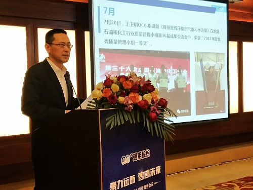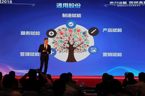 通用股份董事長顧萃先生在會議上作了“賦能2018”的重要主題演講。回首2017,顧董對宏觀經濟和行業情況進行了生動解讀。展望2018,顧董以“大、新、快、鏈”四個字闡述了當下時代的發展趨勢,探討了智能化以及創新思維對未來工業和生活的深遠影響。通用股份將從“制造、產品、營銷、管理、服務”五大賦能促進變革發展,搶占先發優勢,智能制造升級,全球化視野布局,全方位提高效率,做最好的自己。