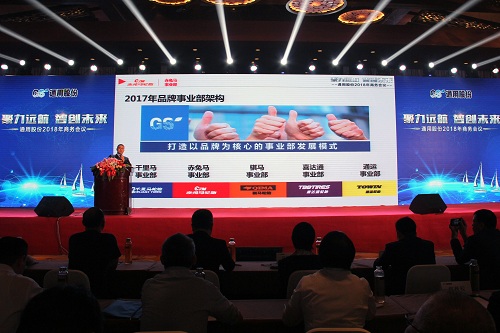 2017年,通用股份完成半鋼胎新品開發,正式涉足半鋼胎領域。通用股份副總經理程金元圍繞擴大供應產能、新增產品開發、完善渠道建設、提升品牌形象、加強內部管理分享等方面,同時對2018年通用股份半鋼事業部規劃發表展望。在新的一年里,圍繞“打造具有國際影響力的民族輪胎高端品牌”的戰略目標,不忘初心,繼續前行。
