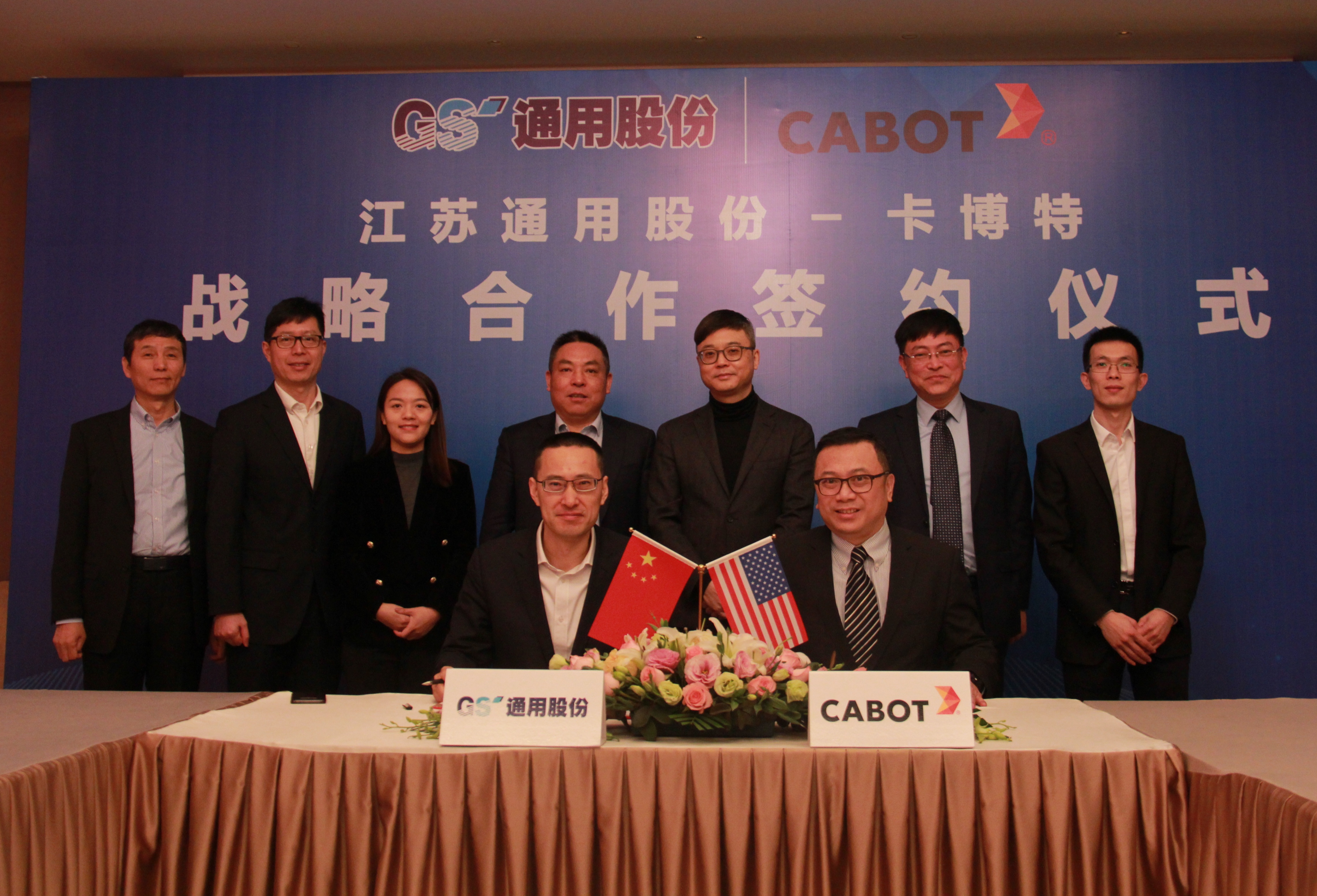 2019年3月22日,通用股份分別與輪胎供應(yīng)鏈領(lǐng)域的兩大巨頭——卡博特、金馬士開展戰(zhàn)略合作簽約儀式。通用股份董事長顧萃、總經(jīng)理王曉軍、常務(wù)副總經(jīng)理程金元,卡博特全球副總裁陳敦孝、金馬士董事長余福來等出席簽約儀式。