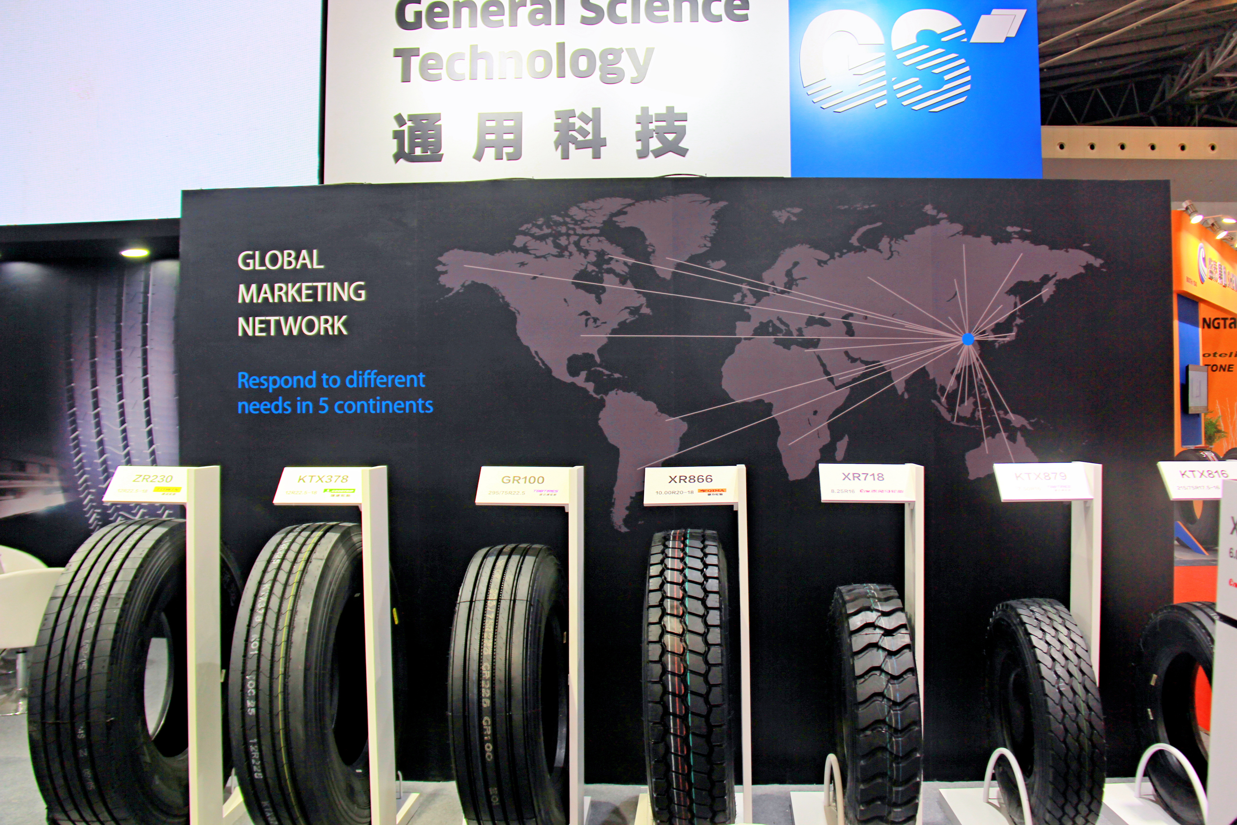 本次展會,通用股份展臺設(shè)計以標志性品牌顏色——藍色為主題調(diào),展廳整體色系統(tǒng)一、層次鮮明,凸顯了通用股份科技、創(chuàng)新、未來的產(chǎn)品設(shè)計理念,向用戶展示了通用始終以提升創(chuàng)新能力為核心,大力推進智能制造,打造世界一流民族輪胎品牌的發(fā)展愿景。