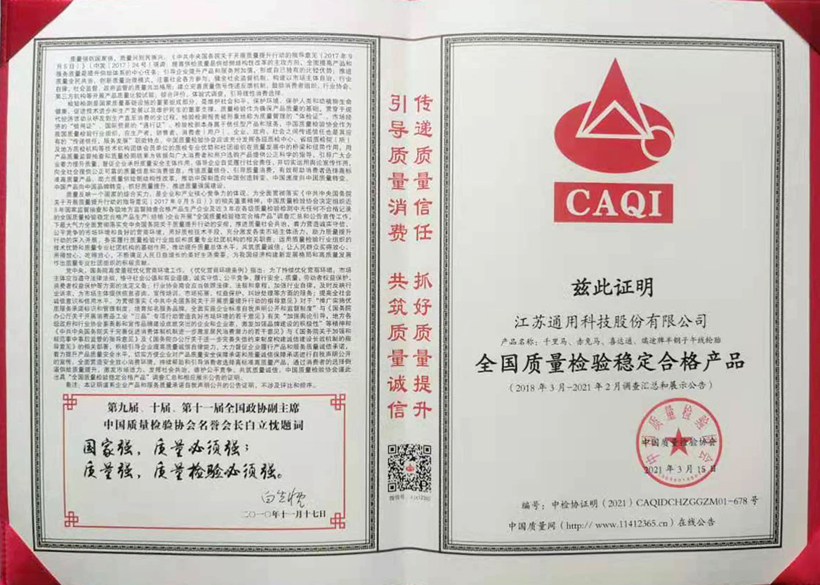 產(chǎn)品質(zhì)量是企業(yè)發(fā)展的基礎(chǔ),作為中國民族輪胎領(lǐng)軍企業(yè)之一,通用股份秉持“讓每一條輪胎成為精品”的企業(yè)使命,全方位深耕質(zhì)量管理,建立了嚴(yán)苛的產(chǎn)品質(zhì)量標(biāo)準(zhǔn),完善的內(nèi)部質(zhì)量監(jiān)控和管理體系,并形成了獨具特色的《質(zhì)量三字經(jīng)》、《輪胎當(dāng)自強》等質(zhì)量文化,從思想上引導(dǎo)、提升、深化全員質(zhì)量意識。公司從原材料采購、生產(chǎn)制造到產(chǎn)品出廠,全面貫徹“質(zhì)量一票否決制”,一旦有產(chǎn)品質(zhì)量方面的問題,絕對不允許進入下一道工序,嚴(yán)把質(zhì)量關(guān),確保為客戶提供高質(zhì)量的優(yōu)質(zhì)產(chǎn)品。