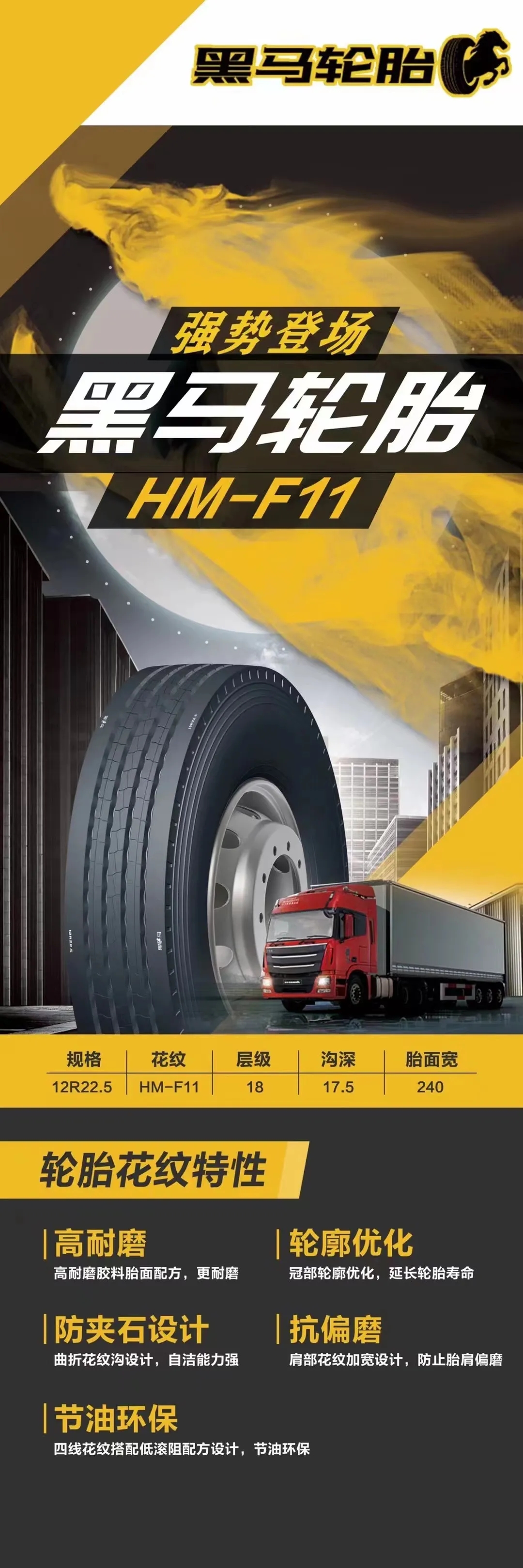今年推出的黑馬輪胎HM-A33以其高顏值、高耐磨性、節(jié)油環(huán)保等特點(diǎn)獲得了市場(chǎng)一致好評(píng)。