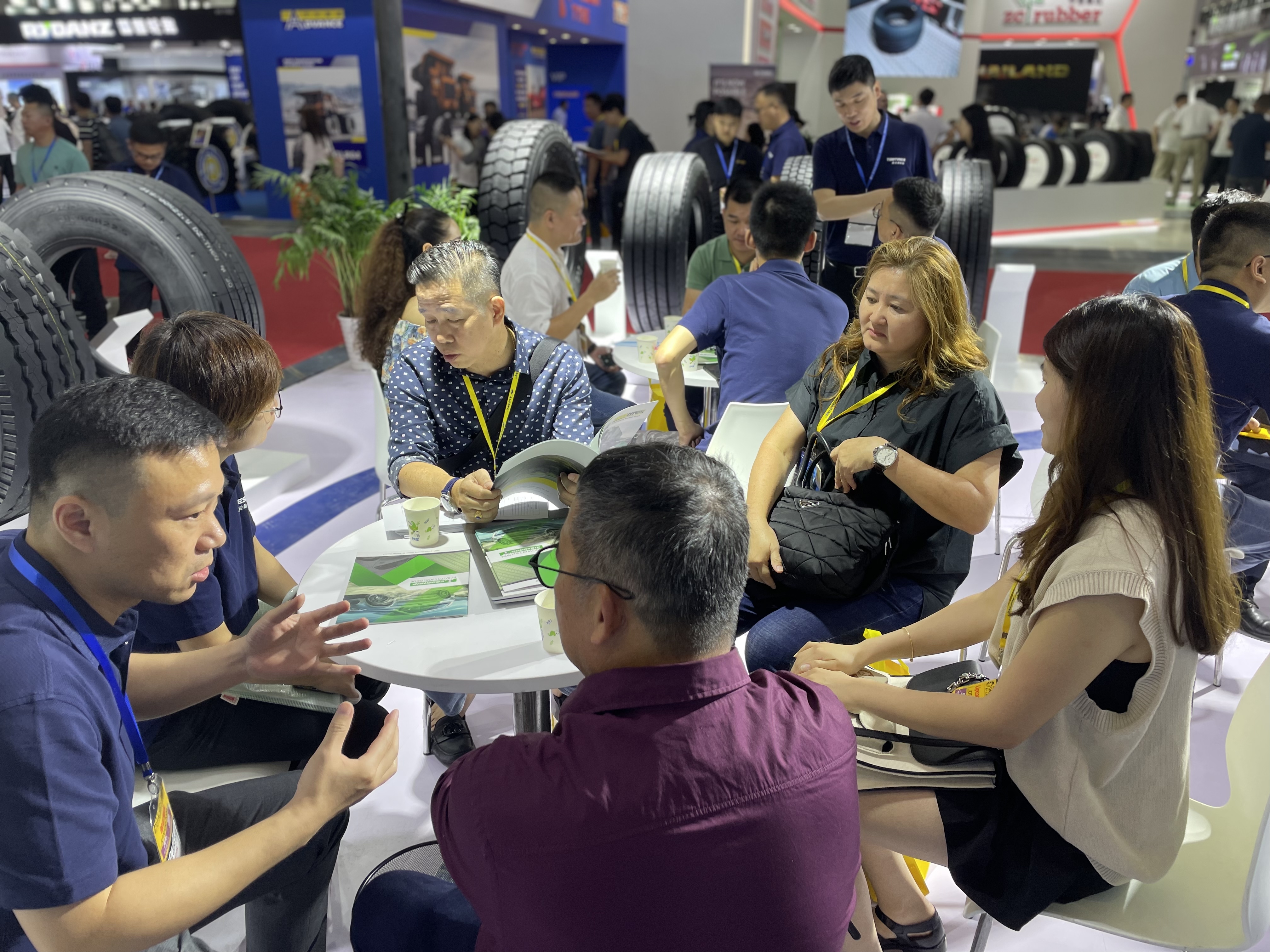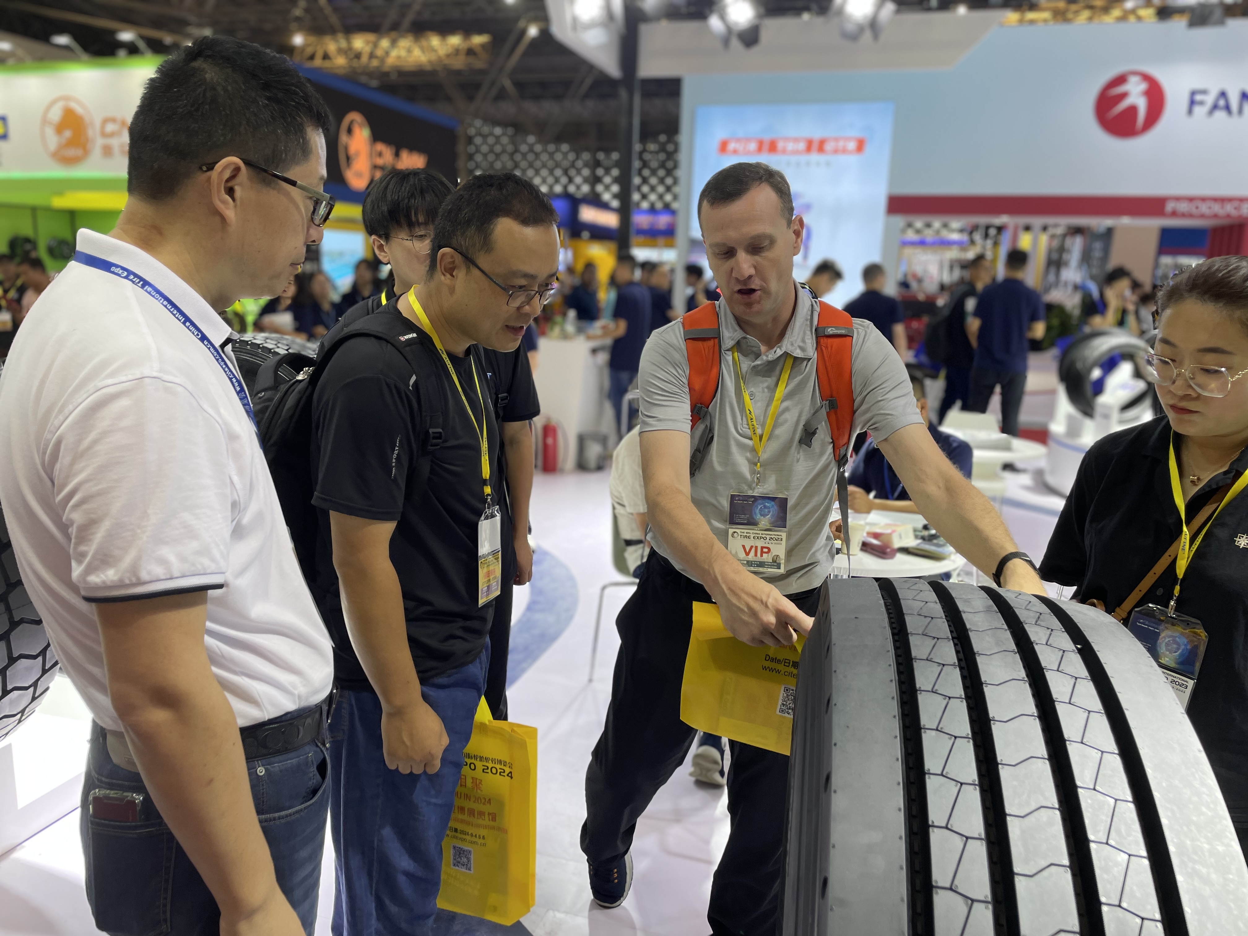 本次展會,通用股份展出了KTX816、CAT8、CM5等多個明星產品,涵蓋中短途重載胎、工程胎、農業機械輪胎、新能源輪胎、摩托車輪胎等細分領域,通過現場產品展示與專業講解,憑借獨特的創新設計、穩定可靠的性能,通用股份展臺前吸引眾多國內外參展客商蒞臨參觀、洽談,現場人頭涌動,氣氛火爆。